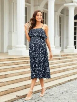 Maternity Ditsy Floral Print Tie Shoulder Ruffle Hem Cami Dress