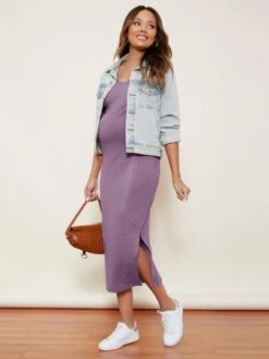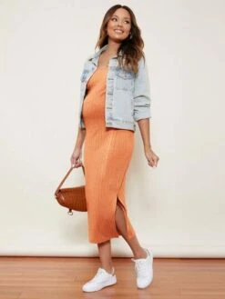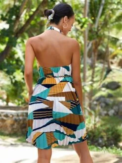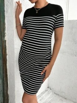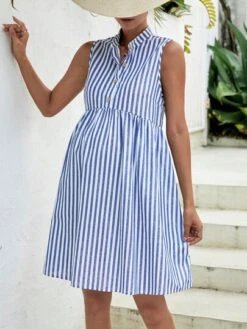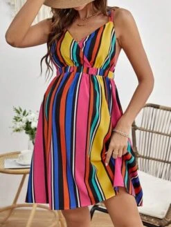 SHEIN Maternity Striped Print Crisscross Backless Cami Dress