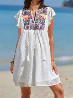 SHEIN Maternity Floral Embroidery Butterfly Sleeve Swiss Dot Smock Dress