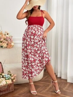SHEIN Maternity Gingham & Ditsy Floral Print Ruffle Trim Smock Dress