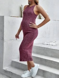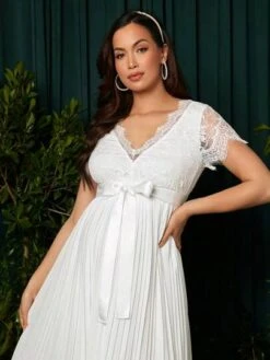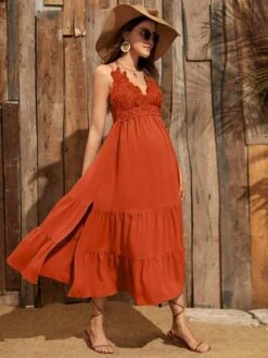 SHEIN Maternity Guipure Lace Insert Split Thigh Halter Dress