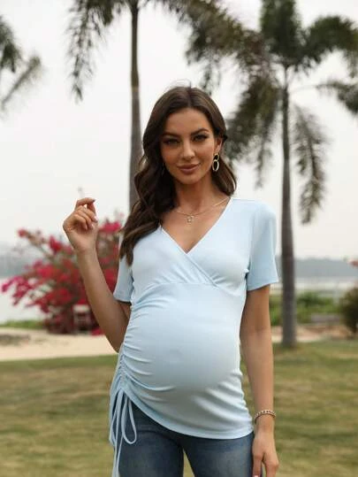 Be the first to review “Maternity Surplice Neck Drawstring Side Tee” Cancel reply