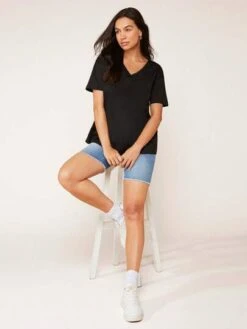 SHEIN BASICS Maternity 100% Cotton V-neck Drop Shoulder Solid Tee