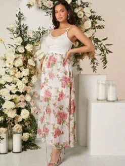 SHEIN Maternity Lace Cami Top & Floral Print Adjustable Waist Skirt Set