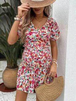 SHEIN Maternity Floral Print Tie Back Top & Adjustable Waist Shorts