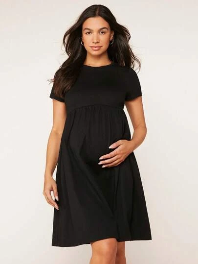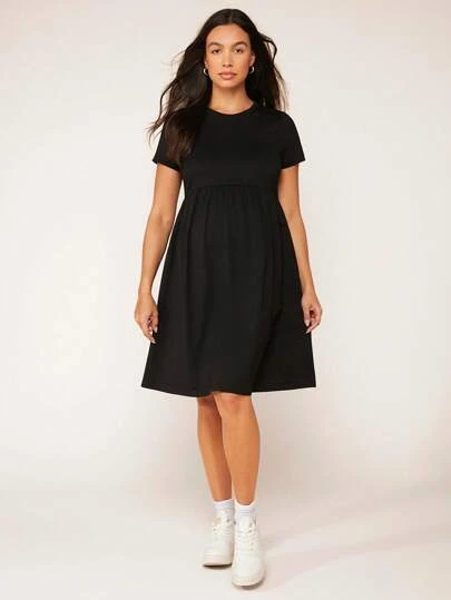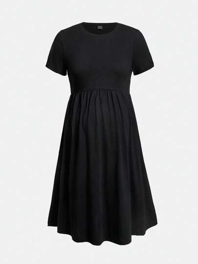 SHEIN BASICS Maternity 100% Cotton Solid A-line Dress