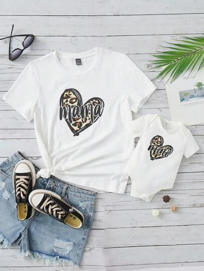SHEIN Maternity 1pc Letter & Heart Print Tee