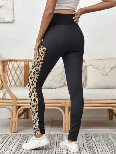 SHEIN Maternity Adjustable Waist Leopard Print Phone Pocket Leggings