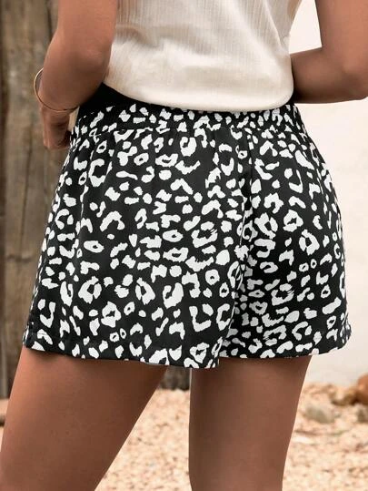 SHEIN Maternity Adjustable Waist Leopard Print Wide Leg Shorts