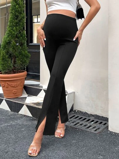 SHEIN Maternity Adjustable Waist Split Hem Flare Leg Pants
