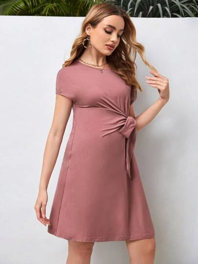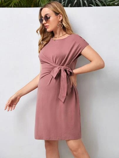 SHEIN Maternity Batwing Sleeve Knot Front Dress