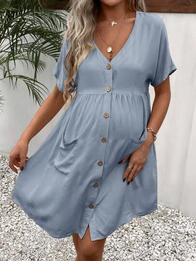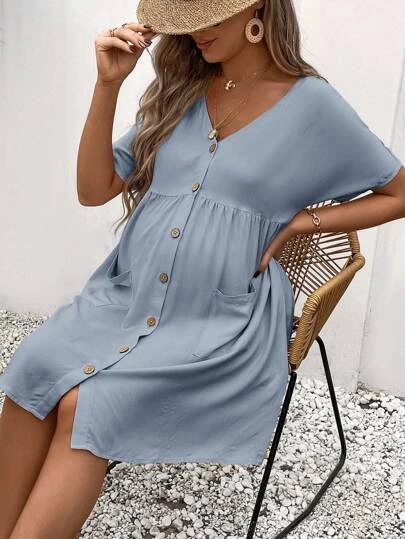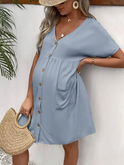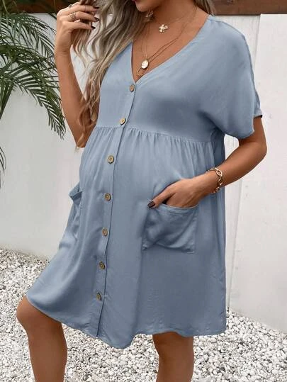 SHEIN Maternity Batwing Sleeve Pocket Patched Smock Dress