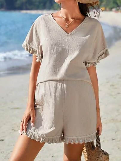 SHEIN Maternity Batwing Sleeve Top & Shorts