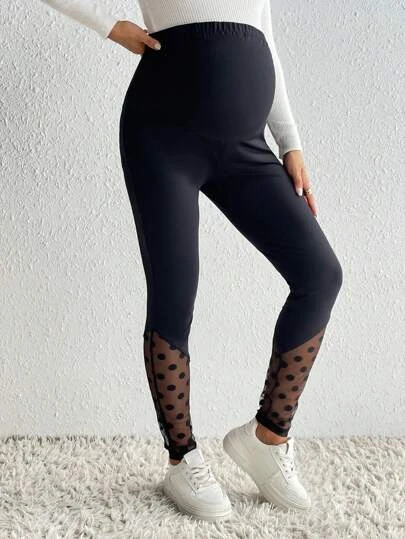 SHEIN Maternity Contrast Mesh Adjustable Waist Leggings