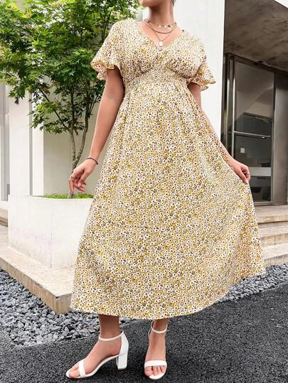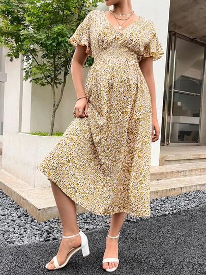 SHEIN Maternity Ditsy Floral Print Butterfly Sleeve Dress