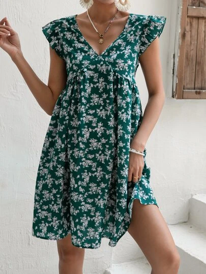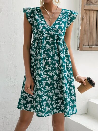 SHEIN Maternity Ditsy Floral Print Ruffle Trim Dress