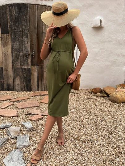 SHEIN Maternity Drawstring Waist Curved Hem Dress