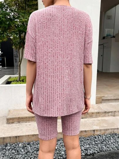 SHEIN Maternity Drop Shoulder Tee & Biker Shorts