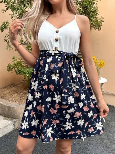 SHEIN Maternity Floral Print Belted Cami Dress