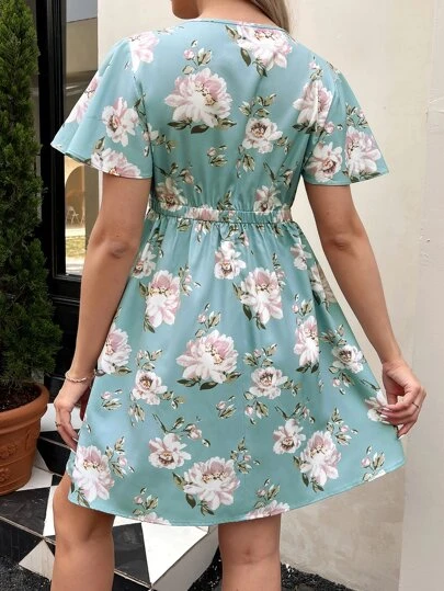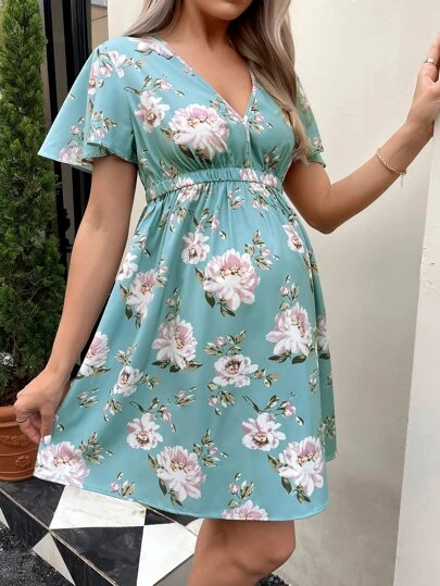 SHEIN Maternity Floral Print Butterfly Sleeve Dress