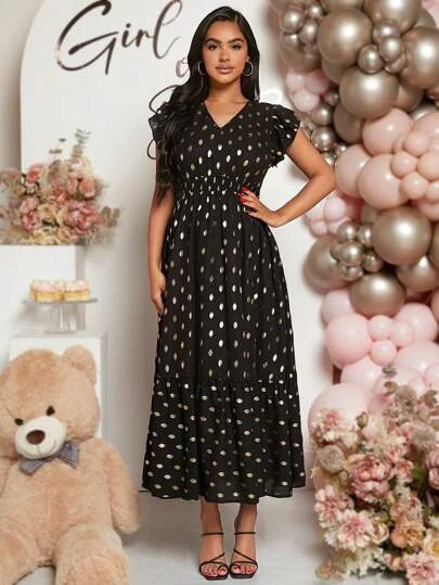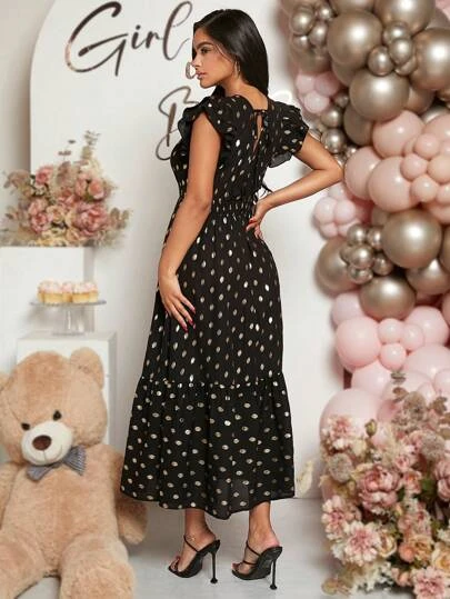 SHEIN Maternity Gold Dot Print Ruffle Hem Dress