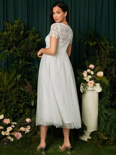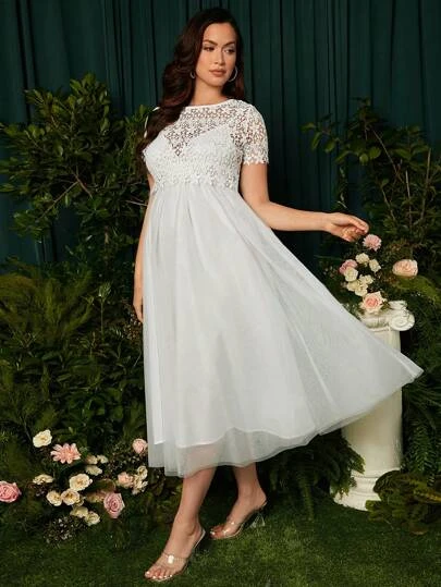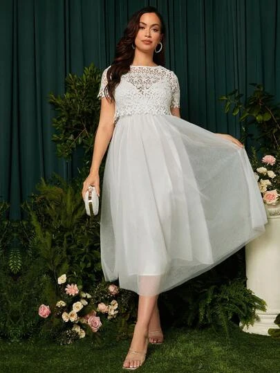 SHEIN Maternity Guipure Lace Top & Mesh Overlay Cami Dress