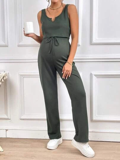 SHEIN Maternity Notched Neckline Tank Top & Drawstring Waist Pants