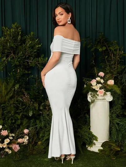 SHEIN Maternity Off Shoulder Ruched Mermaid Hem Dress Without Veil