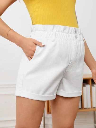 SHEIN Maternity Paperbag Waist Roll Up Hem Denim Shorts