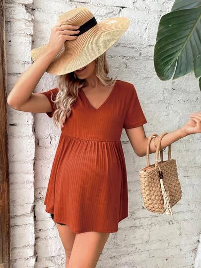 SHEIN Maternity Ribbed Knit Peplum Tee