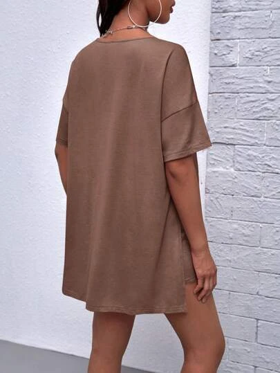 SHEIN Maternity Solid Split Hem Tee & Biker Shorts