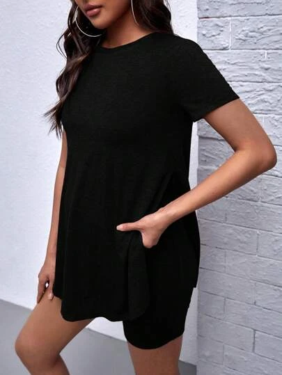 SHEIN Maternity Solid Split Side Tee & Biker Shorts