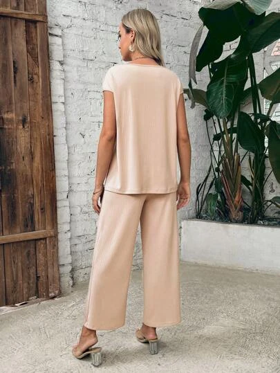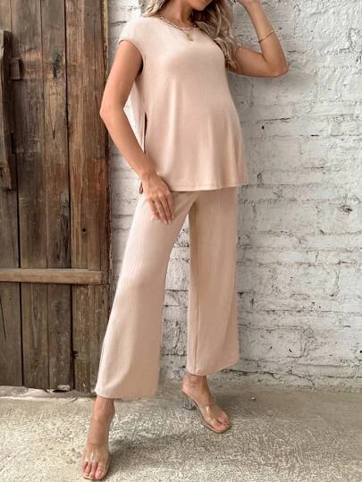 SHEIN Maternity Solid Tee & Adjustable Waist Pants