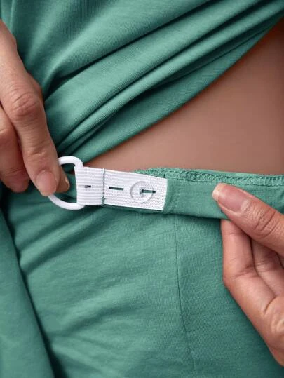 SHEIN Maternity Solid Belted Tee & Adjustable Waist Pants Set