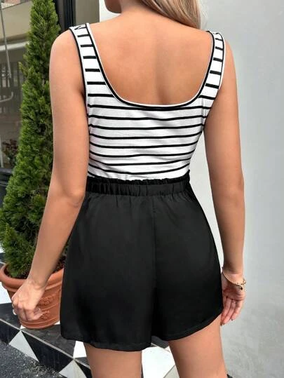SHEIN Maternity Striped Tank Top & Paperbag Waist Shorts