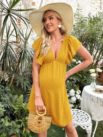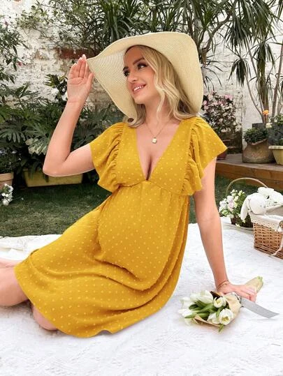 SHEIN Maternity Swiss Dot Ruffle Trim Dress