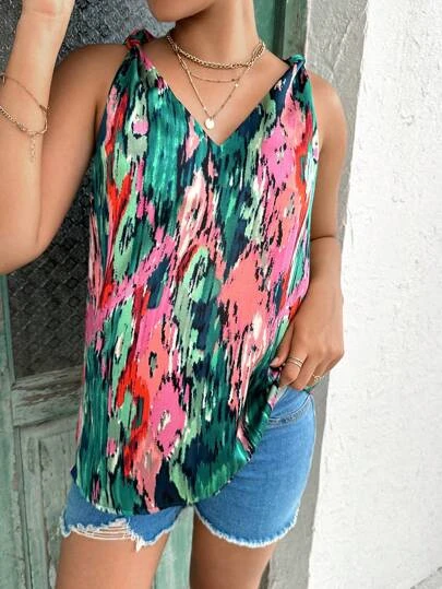SHEIN Maternity Tie Dye Knot Shoulder Blouse
