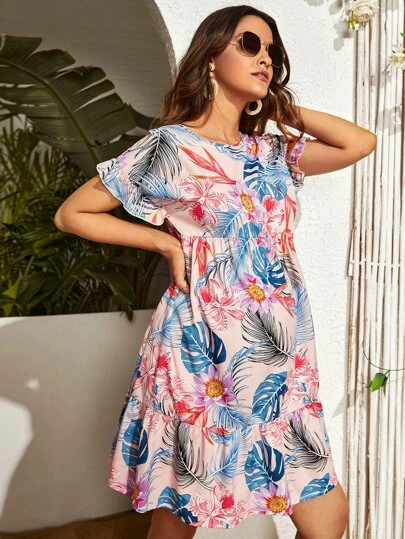 SHEIN Maternity Tropical Print Ruffle Hem Dress