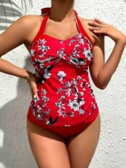 SHEIN Maternity Tropical Print Halter Push Up One Piece Swimsuit