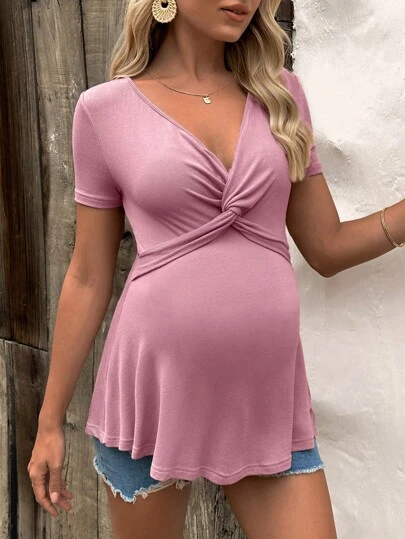 SHEIN Maternity Twist Front Solid Tee