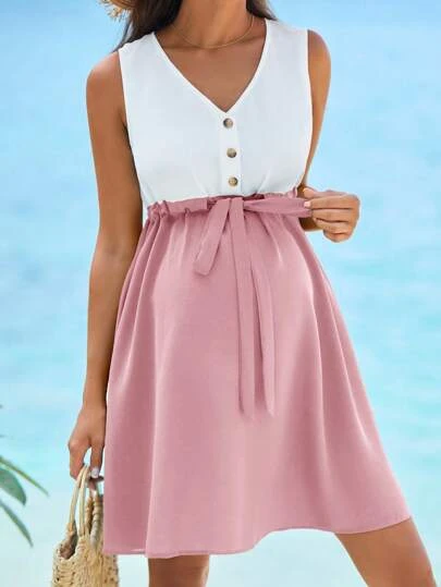 SHEIN Maternity Two Tone Drawstring Waist Dress