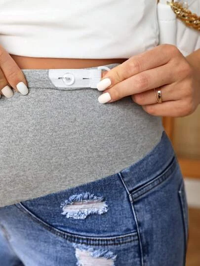 SHEIN Maternity Wideband Waist Ripped Raw Hem Skinny Jeans