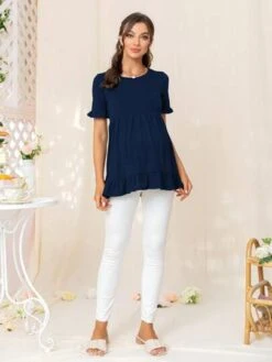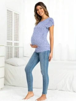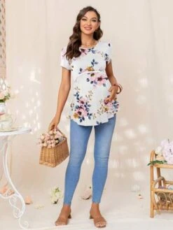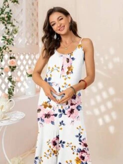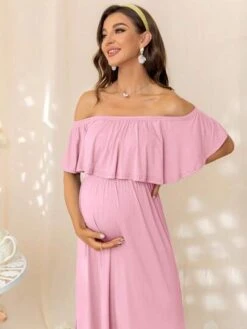 DEARCASE Maternity Floral Print Off Shoulder Ruffle Trim Dress